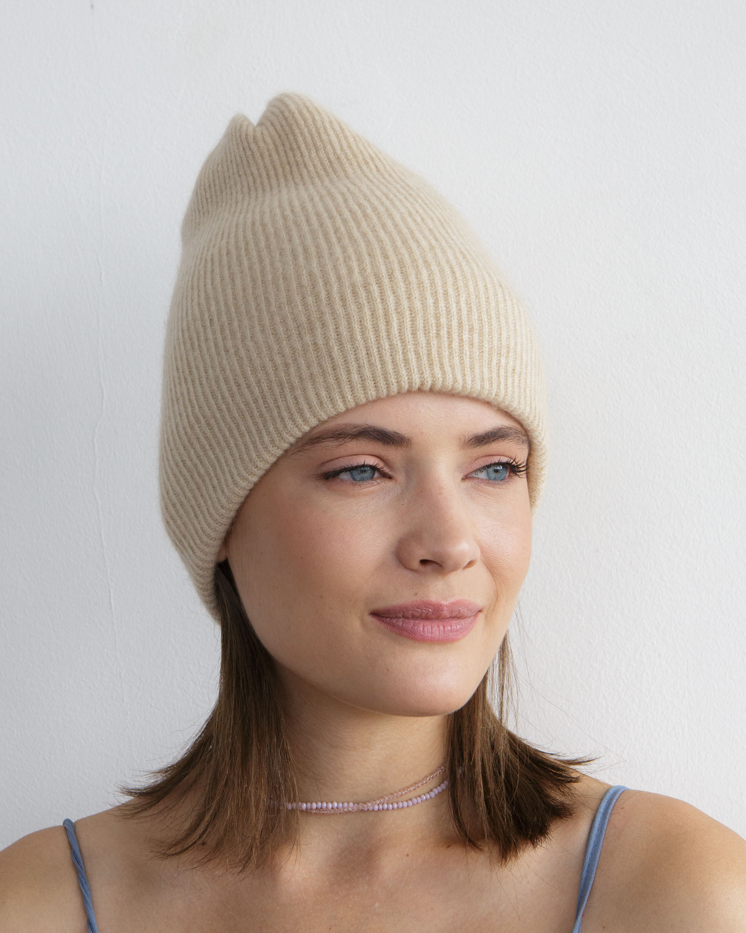 Шапка кашемировая двойная бежевая