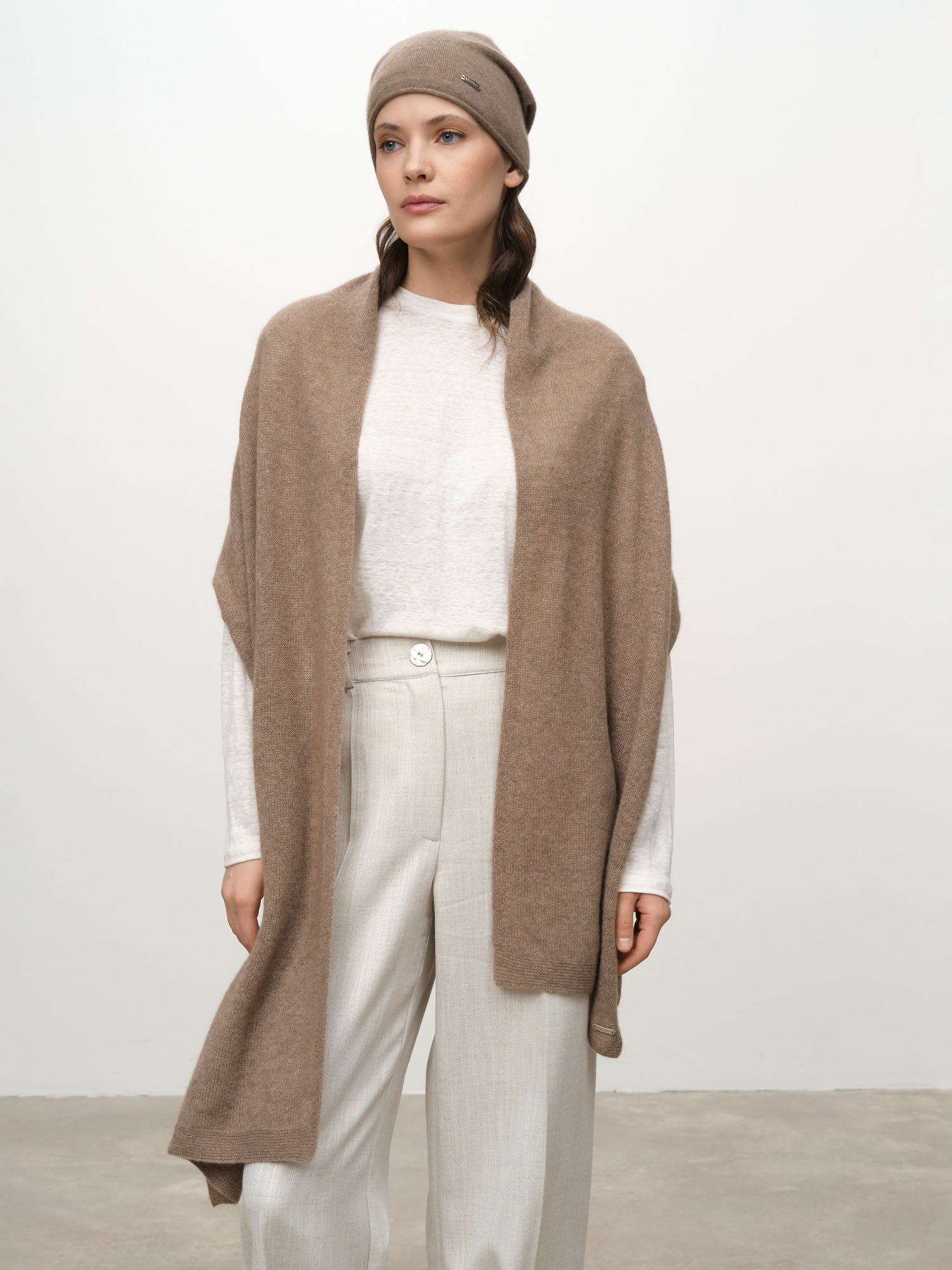 Шикарный шарф! 100% кашемир оправдывает свою стоимость - невероятно мягкий и теплый. Цвет капучино очень стильный, сочетается с любой верхней одеждой.