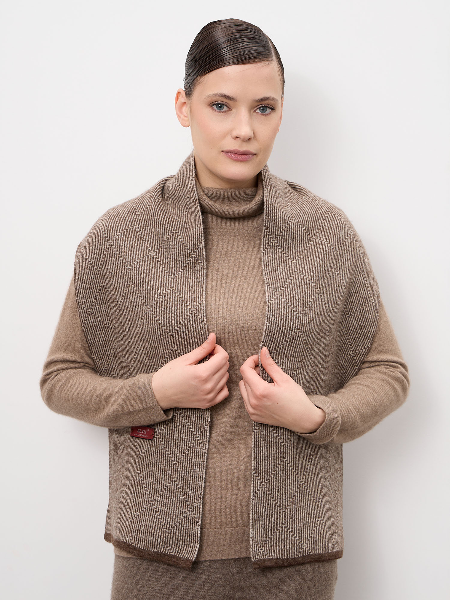 Шарф из шерсти UL Geo в коричневом оттенке — стильный и универсальный аксессуар, который идеально дополняет осенне-зимний гардероб. Лаконичный дизайн и выразительная фактурная вязка придают модели современный и элегантный характер. Шарф легко сочетается с пальто, куртками и трикотажем, создавая уютный и гармоничный образ.