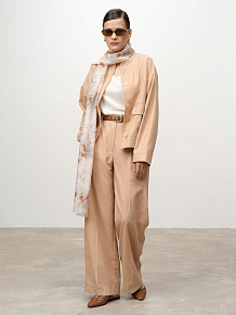 Прямой свободный силуэт с укороченной длиной. Минималистичный крой подчеркивает современность и универсальность модели.