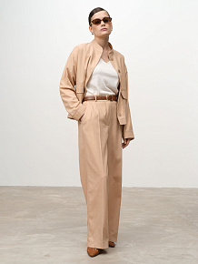 Идеально сочетается с брюками или юбками из льна, а также с базовыми топами и платьями. Подходит для повседневных и городских образов.