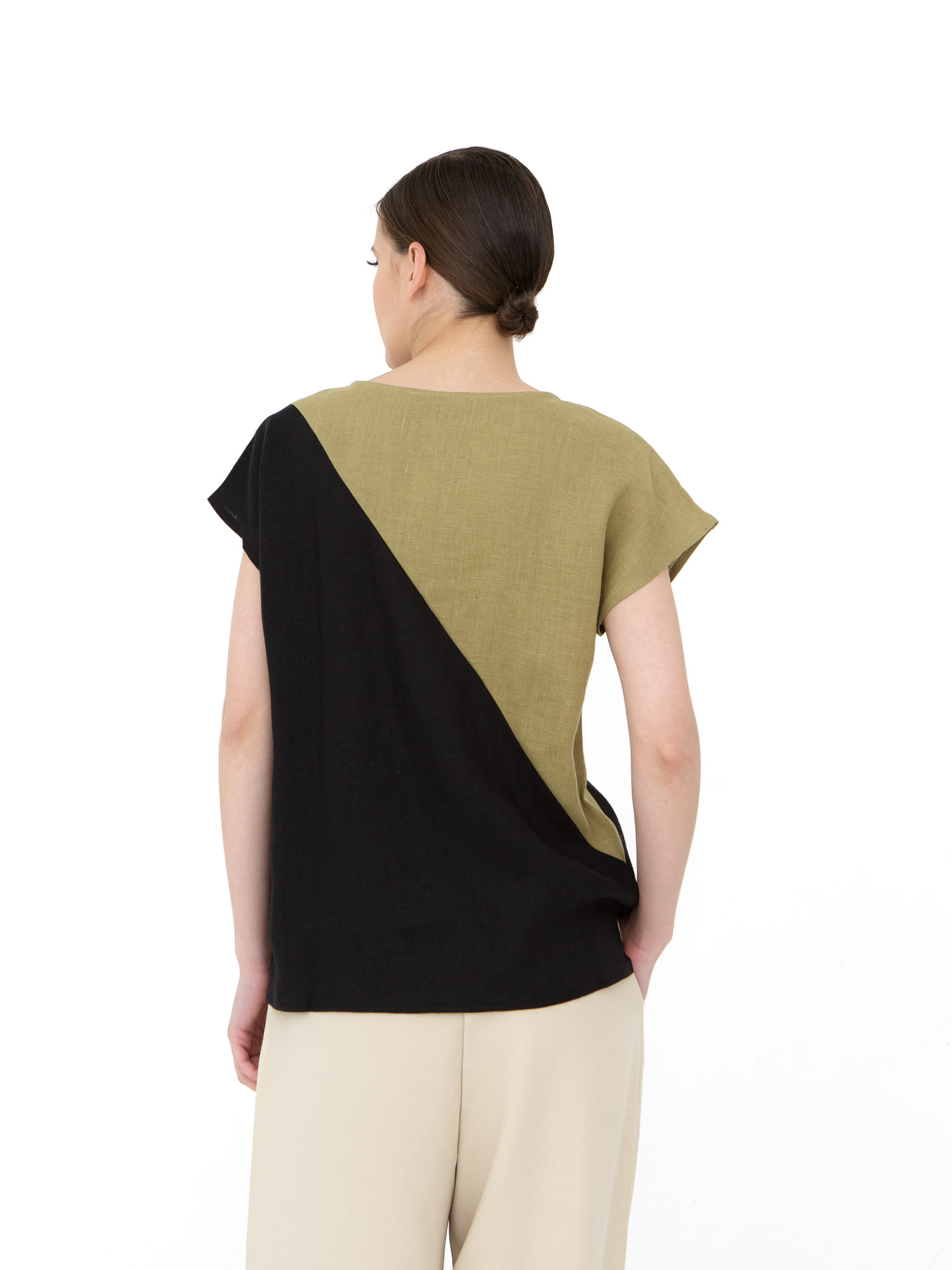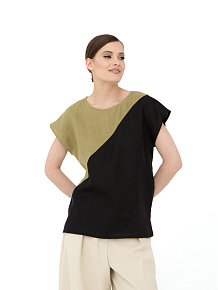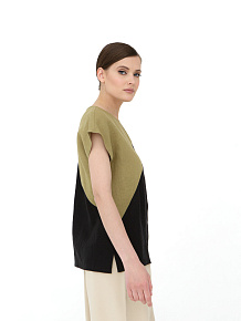 Женская блузка в оливково-черном цвете — стильная и современная модель с графичным дизайном, которая добавляет образу выразительности. Легкий силуэт и натуральная ткань обеспечивают комфорт в течение всего дня, а контрастное цветовое решение делает блузку эффектной базой для повседневного гардероба.