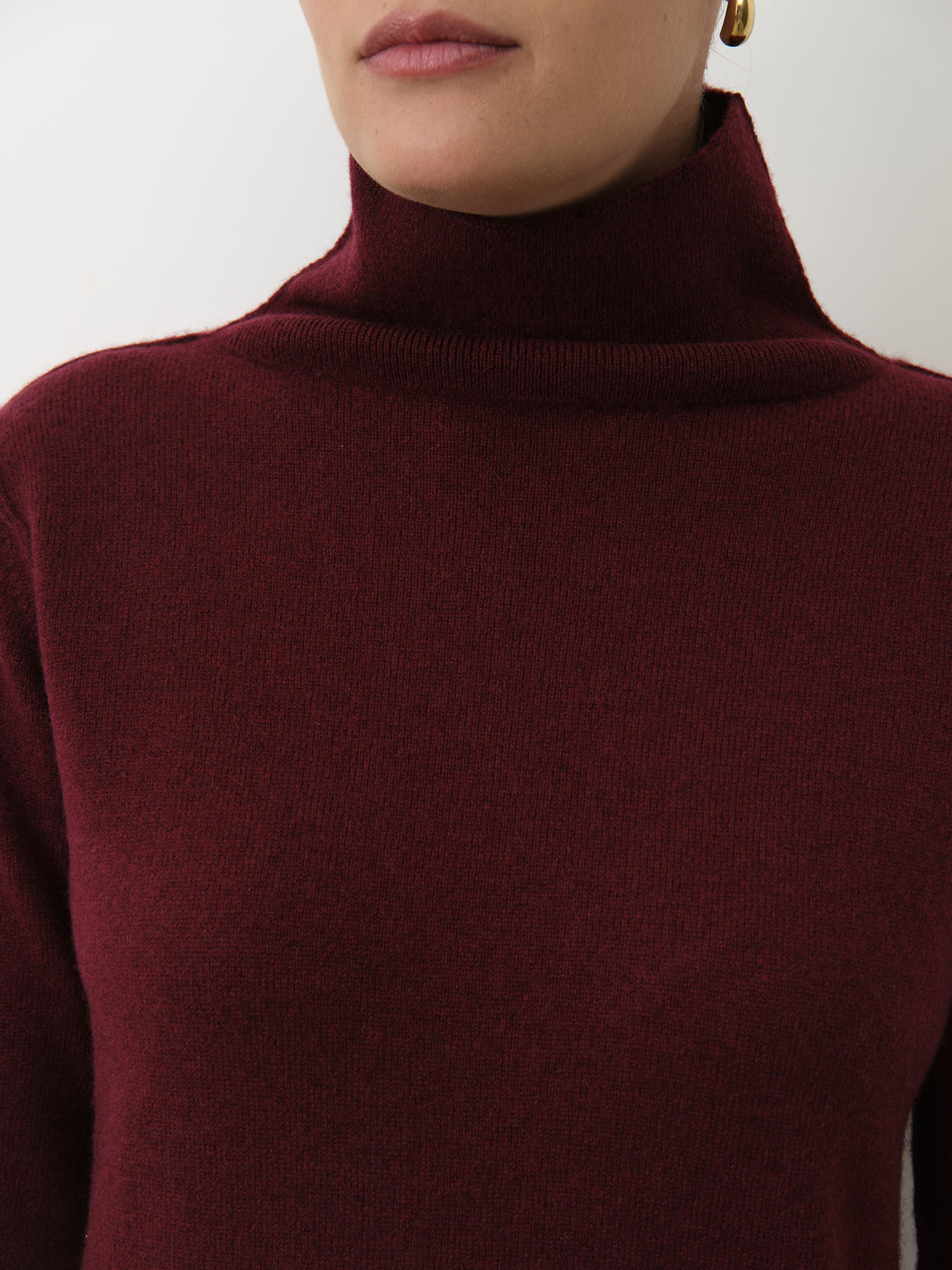 Воротник с мягкой драпировкой, аккуратные боковые разрезы для свободы движений, ровная трикотажная вязка и качественная обработка краёв.