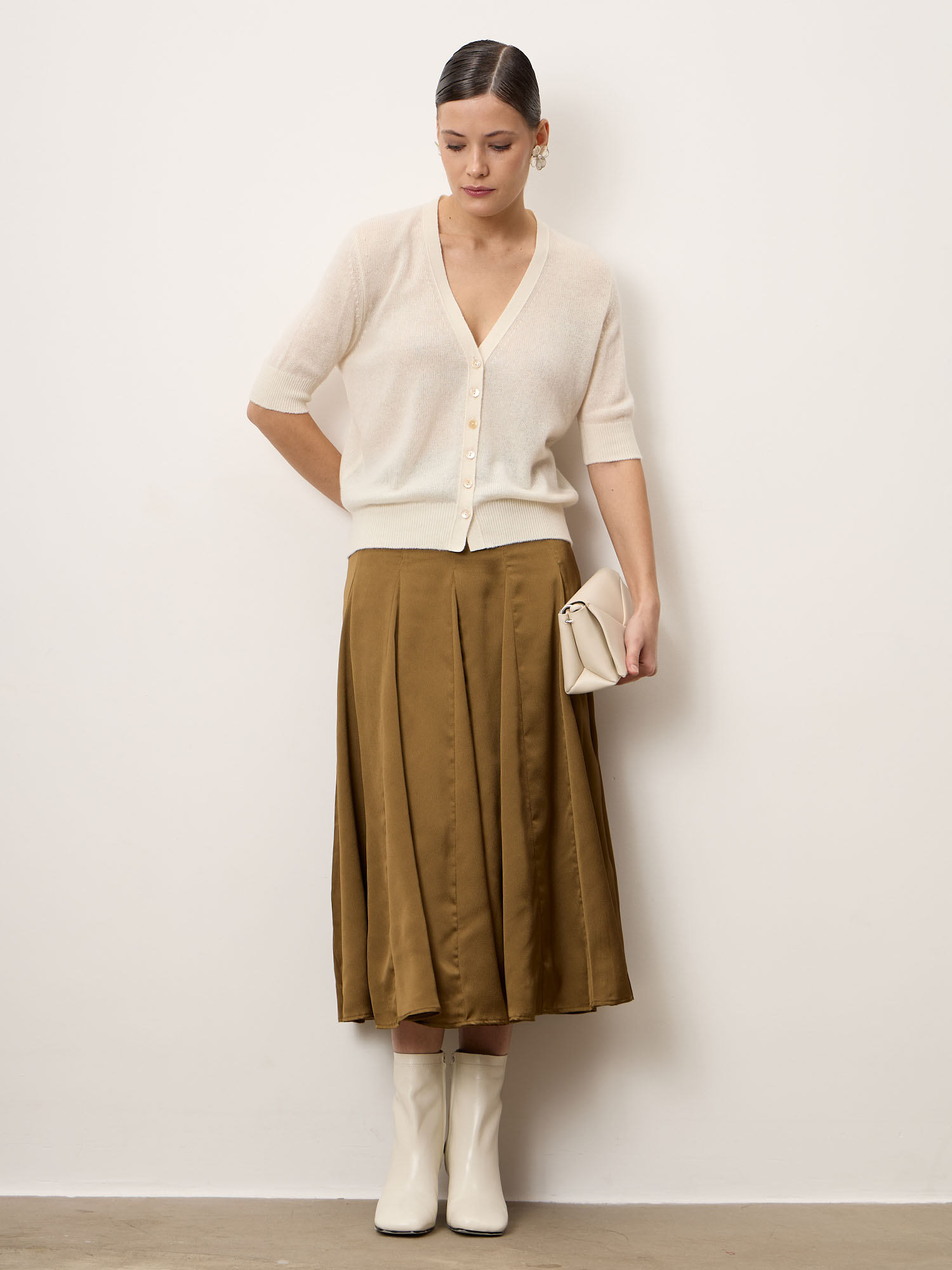 Кремовый — светлый, благородный оттенок, подчёркивающий свежесть образа и легко сочетающийся с базовым гардеробом.